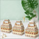 Cajas de favores de baby shower boho tribales con diseño indio americano azteca del suroeste de fondo.