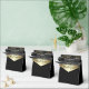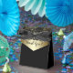 Elegantes cajas de favores de cumpleaños de encaje negro y dorado. Puedes agregar texto al frente y atrás de esta hermosa caja de favores de fiesta negra y dorada y elegir el color de fondo y de la cinta. Este es un diseño impreso sin encaje real.