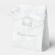 Cajas de favores de fiesta blancas del carruaje plateado de Cenicienta. Personalice el texto para cualquier evento.