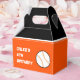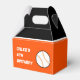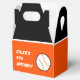 Cajas de favores de fiesta de cumpleaños de béisbol naranja y negro. Personalice para cualquier evento. Artículos coincidentes disponibles.