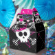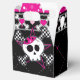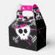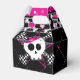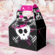 Cajas de favores de fiesta de cumpleaños de calavera y corazones rosados. Artículos coincidentes disponibles.