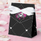 Cajas de favores de fiesta de huesos cruzados y corazones de cráneo rosa. Personalice el texto para cualquier evento.