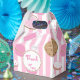 Cajas de regalos de cumpleaños rosadas de galletas y leche. Personalice para cualquier evento. El área de texto blanca se puede eliminar. Artículos coincidentes disponibles.