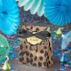 Cajas de regalos de fiesta Chic con estampado de leopardo y hoja de oro. Personalice el texto para cualquier evento.