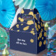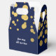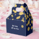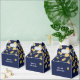 Cajas de regalos de fiesta con confeti de papel de estaño azul marino y dorado. Personalice el texto para cualquier evento.