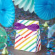 Cajas de regalos de fiesta de cumpleaños divertidas con rayas de arcoíris. Personalice para cualquier evento. Artículos coincidentes disponibles.