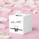 Clásicas cajas de favores de bodas en blanco y negro con texto de arco negro y personalizable - puedes agregar el nombre de la novia y el novio y la fecha del boda.