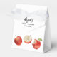 Caja de bienvenida con ilustracion de manzanas, temática rústica de huerto para bebés con ducha.