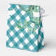 Estas cajas de cambio de ducha para bebés presentan un patrón de gingham azul con una tortuga acuática y hojas de palma de monstera. Utilice los campos de plantilla para agregar el texto personalizado. Perfecto para la temática de la playa y las duchas o fiestas tropicales. Para ver la suite de papelería correspondiente visite www.zazzle.com/dotellabelle Arte acuático y diseño de Victoria Grigaliunas