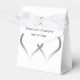 Diseño de corazones de color plata en caja de favores de boda. Personalizar esta caja de favores de boda de color plateado con los detalles de su boda. Si necesita ayuda para personalizar, póngase en contacto con nosotros a través del enlace de esta página. Corazones de color plata diseñan caja de favores de boda personalizada
