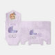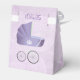Bonitas y elegantes cajas favoritas de carpas de estilo vintage para Baby Shower con diseño de bebé morado y portaequipajes