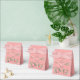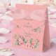 Dé a sus invitados sus favores de agradecimiento en esta caja de bonito con un marco de rosas rosas rosadas en el fondo rosado Nombres de novias y novios y texto de "Gracias"