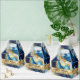 Una caja de favores matrimoniales con un diseño falso de oro, azul y mármol blanco.