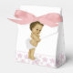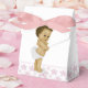 Adorables cajas para recuerdos de baby shower de bebé afroamericano rosa. Puedes agregar texto, cambiar el color del lazo y agregar un color de fondo de tu elección a esta linda caja para recuerdos de baby shower de princesa étnica rosa.