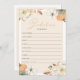Presentamos nuestra tarjeta de juego Pumpkin Baby Shower Predictions For Baby Game Card, diseñada para añadir diversión y emoción a la celebración temática del otoño. Con un encantador diseño de calabaza con colores cálidos de otoño, esta tarjeta de juego invita a los huéspedes a predecir detalles sobre la llegada y los rasgos del bebé. Perfecto para atraer a sus huéspedes y crear recuerdos duraderos, le da un toque festivo y encantador a su ducha de bebé con tema de calabaza.