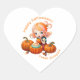 Chica adorable con calabaza dulce llena de dulces. Bueno para envolver regalos.
