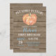 Invitación de primer cumpleaños de calabaza rústica. Fondo rústico de madera.Azul. Invite al Fiesta de Bday o Chica. 1a 2a 3a 4a 5a 6a 7a 8a Novena, Cualquier Edad.