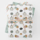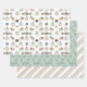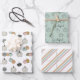 Tres hojas planas de papel de envoltura: una de calabazas y calabazas de color pastel, calabazas y calabazas de agradecimiento y rayas pastel.
