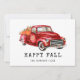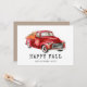 Hermosa tarjeta de Acción de Gracias que presenta una camioneta roja de acuarela que lleva calabazas.