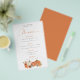 Una alternativa de tarjeta PAPER no con gran valor en tamaño GRANDE 5,5" x 8,5" a un precio de presupuesto. Calabazas Naranja PAPER Fall Florals Menú Boda. Las calabazas y las flores en los colores de los browns caídos, los naranjas y la crema están en la parte inferior con un naranja coordinador en la parte posterior, con un elegante guión para el Menú y fácil de personalizar el resto del texto a sus necesidades.
