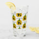 Este cristal presenta calabazas naranjas, fantasmas negros y estrellas y lunas con las palabras "Halloween feliz" encima del diseño.