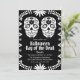 Este diseño único del Día de los Muertos captura aspectos clave de esta celebración mexicana y sería un gran tema para una fiesta de Halloween. Una calavera azucarada es una tradición que se destaca prominentemente en las celebraciones del Día de los Muertos que comienza a finales de octubre y principios de noviembre, por lo que esta tarjeta de invitación es perfecta para cualquier fiesta que tengas durante ese tiempo.