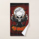 Calavera con dientes afilados y amenazantes en medio de un ambiente oscuro y espeluznante. El cráneo, envuelto en un manto negro, parece un siniestro guardián de la noche. Sus largos dedos de garra parecen llegar hasta el espectador, como si los empujara a las sombras. Los murciélagos oscuros vuelan salvajemente, sus siluetas bailando a la luz de la luna, reforzando la sensación de incomodidad. Un búho fantasmal con ojos brillantes que se quedan mirando de la oscuridad como dos brasas brillantes, observando todo, se sienta en una rama engullida.