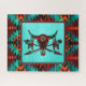 ¡Disfruta de este singular rompecabezas de cráneo de búfalo al suroeste de "One of a Kind"! Tiene un búfalo suroeste o un cráneo de venado y flechas en un fondo turquesa... ¡Rodeado por el borde suroeste en turquesa, Naranja y negro! Este es un Diseño de Arte Gráfico Original creado por el artista Kerry Miller.