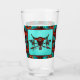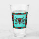 ¡Este es un singular "One of a Kind" (uno de los tipos) en el suroeste de búfalos de cráneo y cristal de cerveza de Flores! Cuenta con un cráneo de búfalo de la tribu suroeste y filas con plumas en un fondo turquesa... ¡Rodeado por un borde suroeste en turquesa, Naranja y negro! Diseño De Arte Original Del Artista Kerry Miller.