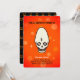 Halloween espeluznante cráneo de cono sobre la invitación a la fiesta de fondo negra y naranja. Todos los textos y números están listos para ser personalizados.