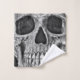 Cubierta de cráneo enclavada en el juego de toallas de baño de diseño creativo de textura gótica en negro y blanco. Decoración única, fresca, moderna y de moda en el cuarto de baño de estilo vintage. Derechos de imagen de Marg Seregelyi Photography.