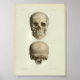 Ilustracion de impresión anatómica de 1844. Vista anterior y posterior del cráneo humano.