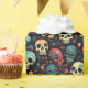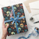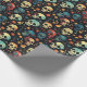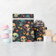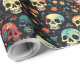 Celebremos Halloween con estilo con nuestro vibrante papel de envoltura de Halloween con un llamativo fondo negro adornado con coloridos y intrincada calaveras en naranja, rojo, azul y blanco. Este llamativo patrón, entrelazado con naranjas extravagantes y flores amarillas y plantas frondosas, ofrece una perfecta combinación de energía y juguetón para todas sus espeluznantes necesidades de regalos. Ideal para fiestas, regalos y decoración de temporada.