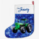 Calcetín Navideño Grande Azul Tractor verde moderno