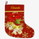 Calcetín Navideño Grande Bailando ángeles bebés en rojo con copos de nieve