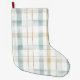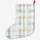 Calcetín Navideño Grande Blue Cream White Plaid Christmas