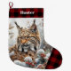 Navidades Bobcat de la vida silvestre Stocking - Personalized Non-Traditional Bobcat in Woodland Personalizado Holiday Decor: Trae un toque único de naturaleza a tu decoración de vacaciones con nuestros Navidades extra-grandes que cuentan con una hermosa pintura acuarela de un bobcat en un bosque nevado. El majestuoso bobcat está medio escondido por un abeto cubierto de nieve, con palos entrelazados y bayas rojas silvestres que contribuyen a la escena natural. Este surtido destaca por su temática de Navidades no tradicionales, que se centra más en la belleza de la naturaleza que en regalos y regalos. Es perfecto para el hombre o la mujer que ama el exterior. Celebra la temporada con este impresionante y distintivo caldo