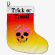 ¡Las acciones ya no son sólo para Navidades! Hacen una fantástica bolsa de dulces en Halloween. Cuelguen para que se llenen, o hagan que sus hijos los engañen o traten con ellos. Naranja profundo a color amarillo desvanece fondo de ombré. Feliz cráneo amistoso con un diseño de color vintage. Dibujo digital original. Truco o tratamiento escrito en tipografía espeluznante y angustiada.