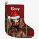 Calcetín Navideño Grande Boykin Spaniel Dog Red Plaid Personalizado