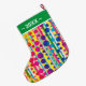 Calcetín Navideño Grande [Burbujas Beatnik] Punto de Polka Retro Verde tach