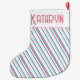Un divertido surtido de vacaciones para el chica moderno. Estas medias incluyen un diseño caprichoso rosa y de banda azul con un tipo de letra negrita para el nombre.