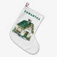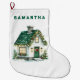 Bring the classic, cozy charm of Christmas morning to your home with this beautiful stocking. Featuring a snug house with a festive green roof, decorated with cheerful Christmas lights against a clean white background, it’s the picture of holiday warmth and joy. This timeless design is the perfect canvas for your family's most cherished traditions. Personalize it with your child's name to create a heartfelt keepsake they will treasure—a beautiful reminder that home is where the magic of Christmas lives.