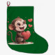 Calcetín Navideño Grande Christmas Stocking, Monkey Red Hearts Love
