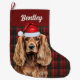 Calcetín Navideño Grande Cocker Spaniel Green and Red Plaid with Dog's Name