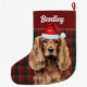 Soft red and green plaid for a seasonal feel on this two-sided Christmas stocking has a watercolor illustration of cool looking Cocker Spaniel and your pup's name on both sides.