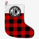 Calcetín Navideño Grande Comprobación de búfalo negro rojo Monograma fuente