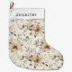 Calcetín Navideño Grande Cream White Brown Floral Christmas