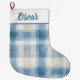 Calcetín Navideño Grande Custom Name Blue & White Plaid Christmas Stocking