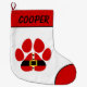 How about a personalized Christmas stocking for your puppy's Christmas holiday> This cute stocking has a Santa costume in the shape of a paw print and has a place for your dog's name.