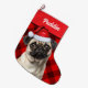 Calcetín Navideño Grande Cute Pug Dog Red Buffalo Plaid Custom